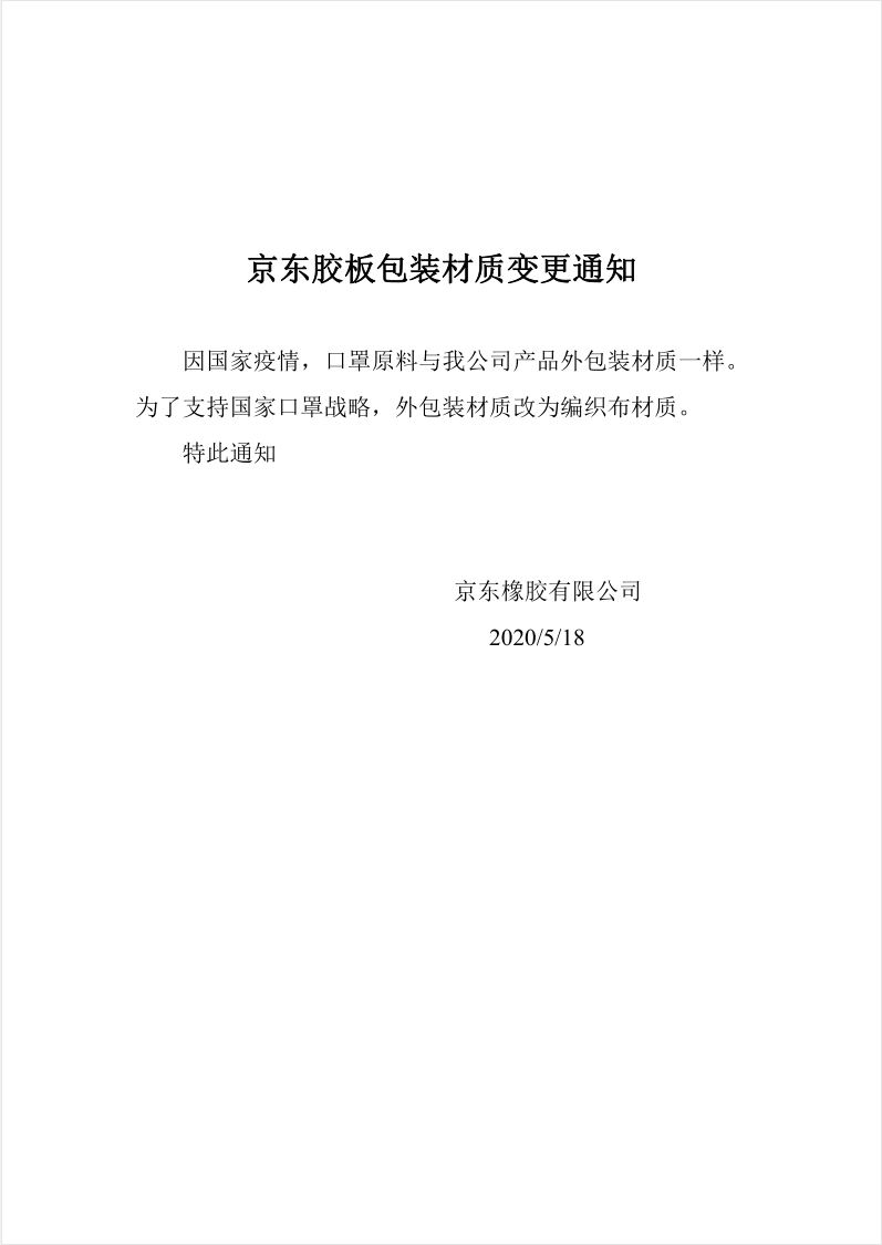 京東橡膠板包裝材質變更通知